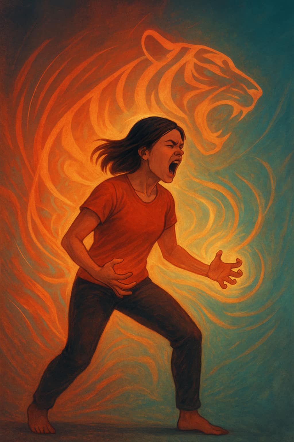 L’exercice du Tigre est une pratique corporelle qui consiste à incarner l’animal sauvage et instinctif qu’est le tigre, pour laisser sortir la colère de manière saine et sécurisée.