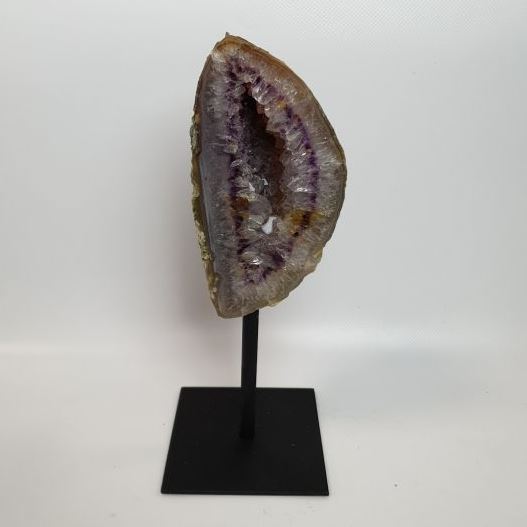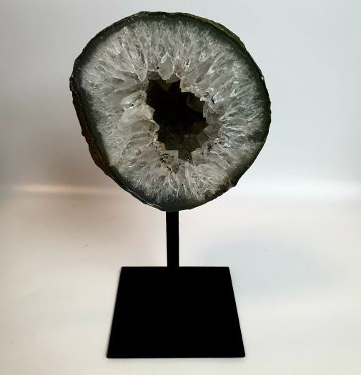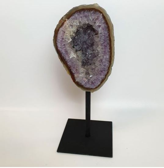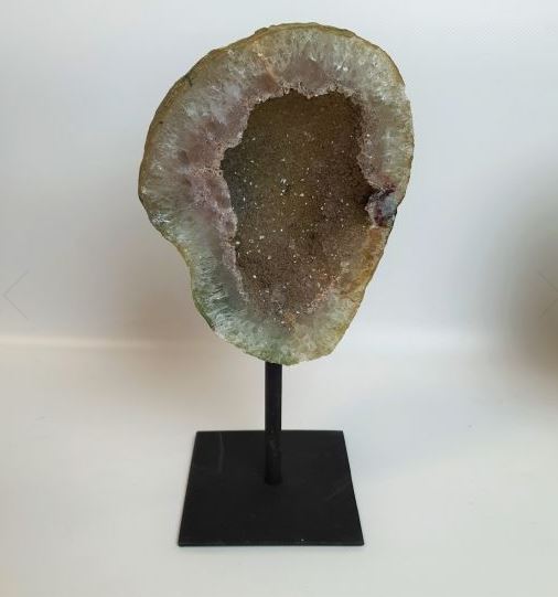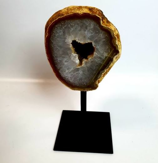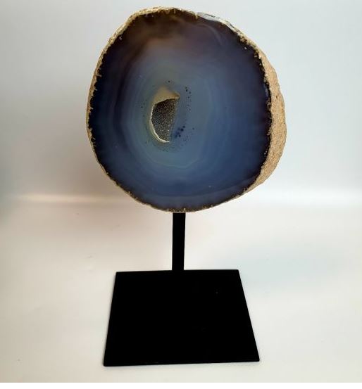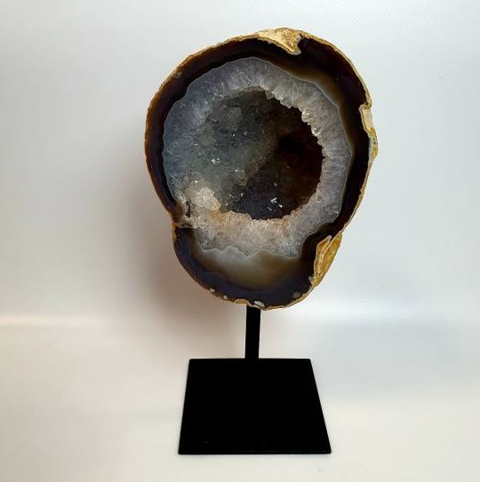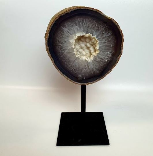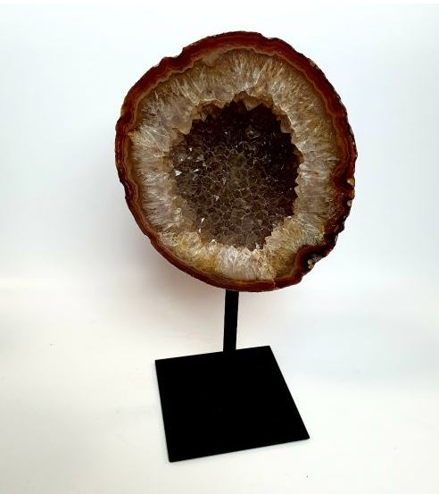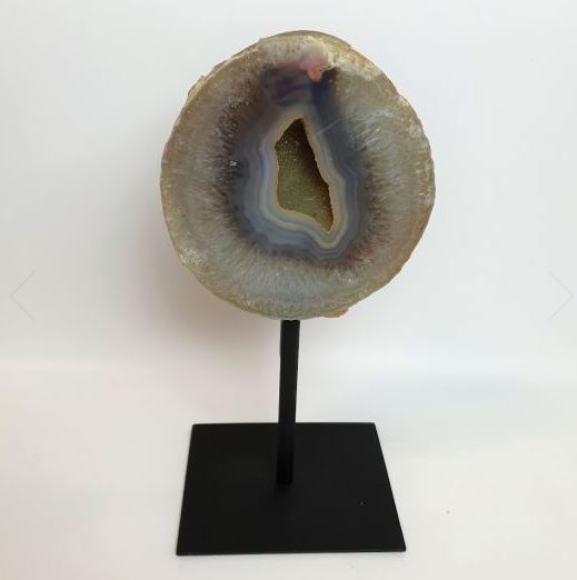 | Les Géode d’Agate sur pied en métal. Taille : Base 10*12cm, Hauteur : 25-30cm. Prix: 145€ |